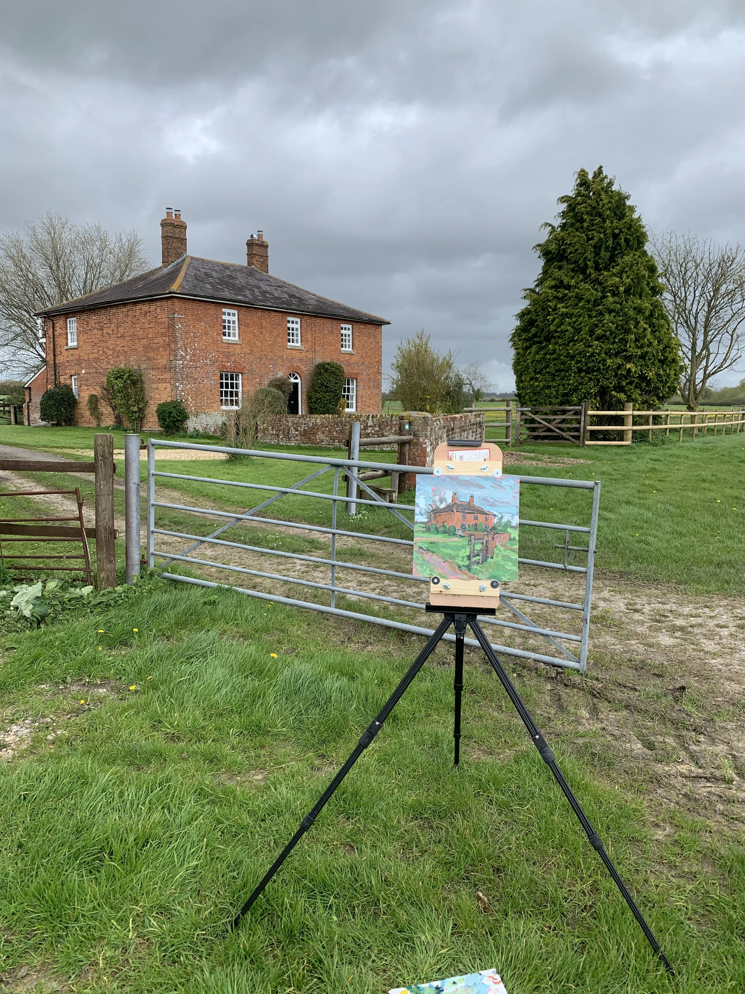 Sketching Mill Farm in acrylic paint, Wiltshire.