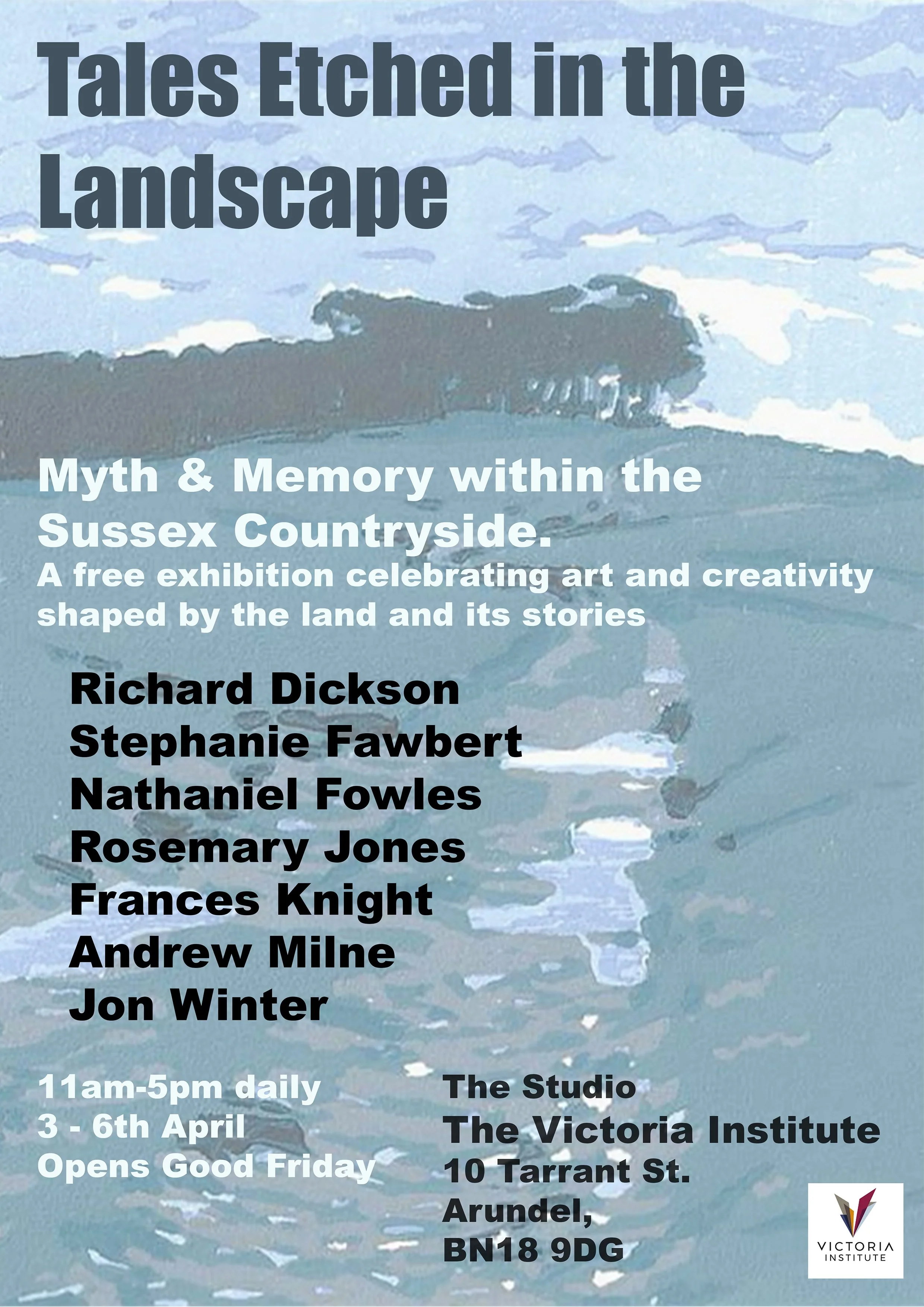 I have coordinated an exhibition of art by a group of six other talented artists at the Victoria Institute in Arundel entitled 'Tales Etched in the Landscape’: Myth & Memory within the Sussex Countryside. It is a free exhibition celebrating art and creativity shaped by the land and its stories and includes paintings, photography and a variety of handmade prints.